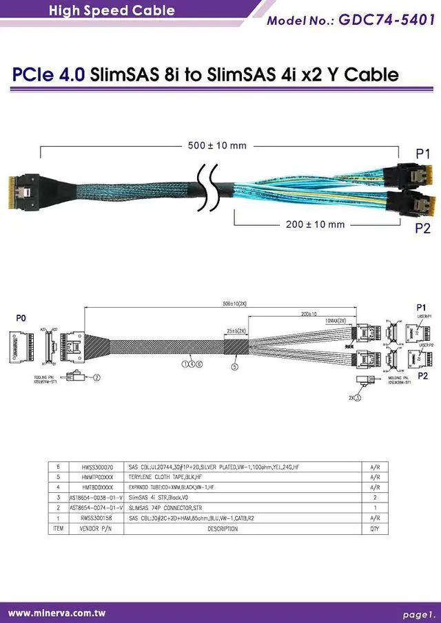Product Description: PCIe Gen 4 SlimSAS 8i (SFF-8654) to SlimSAS 4i x2 Y cable