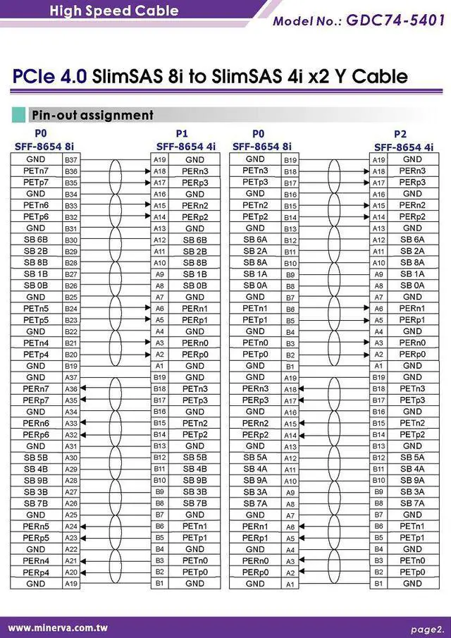 * Built-in SFF-8654 8i connector, pin-out defined by SFF-9402 Rev 1.1
