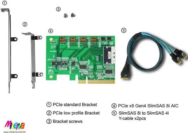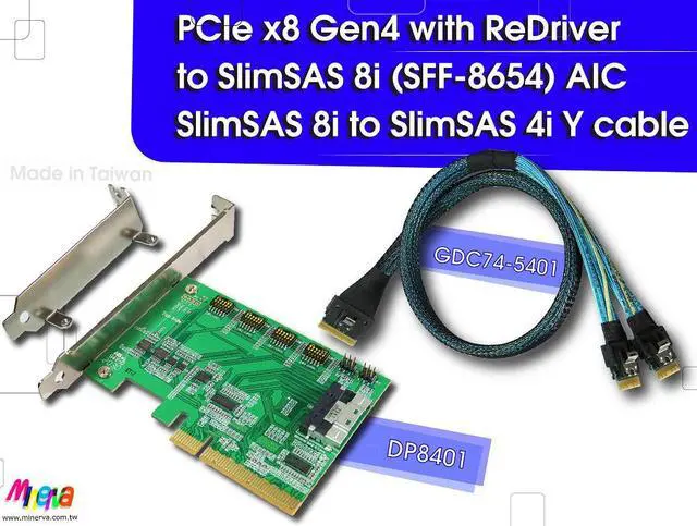 * SlimSAS 8i (SFF-8654) to PCI Express 4.0 convert