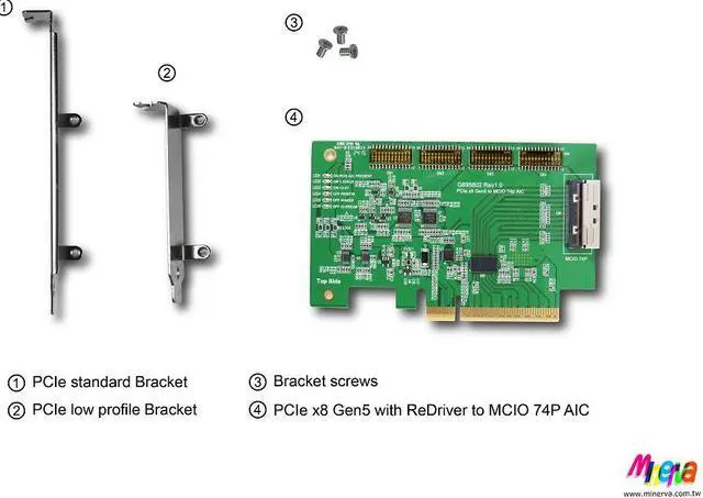 * MCIO 74P to PCIe x8 Gen4 convert