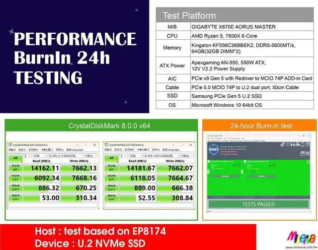 * Built-in MCIO 74P connector with 30u( 0.38 um) min Au mating area plating