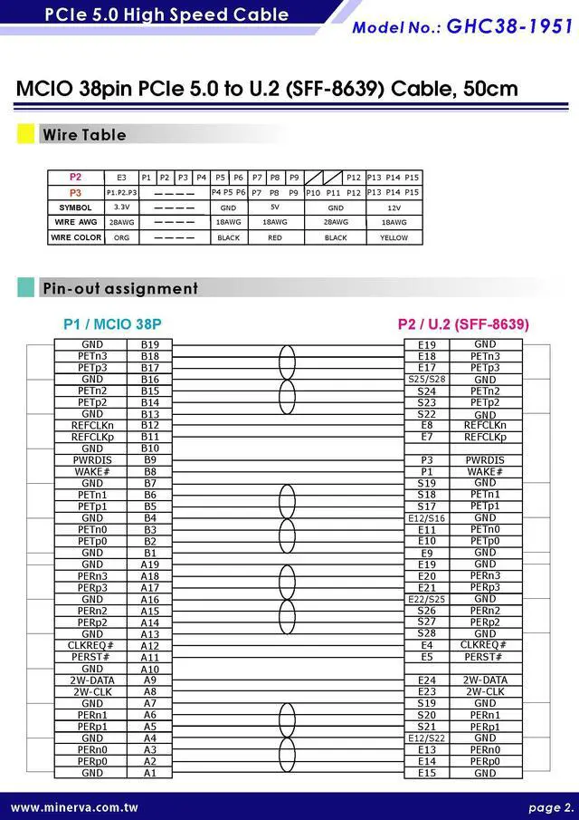 Product Description: MCIO 38P PCIe 5.0 to U. 2 (SFF-8639) Cable