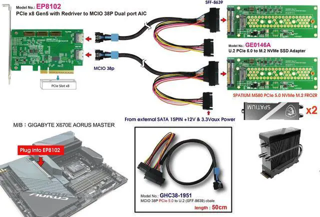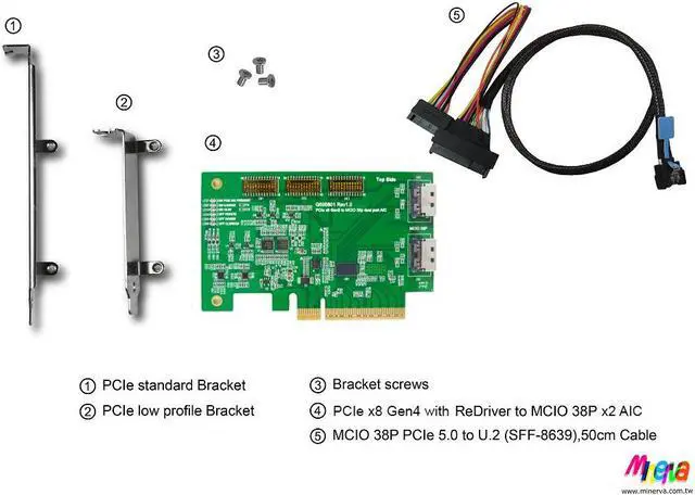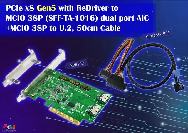 *MCIO 38P (SFF-TA-1016) dual port to PCIe x8 Gen 5 convert