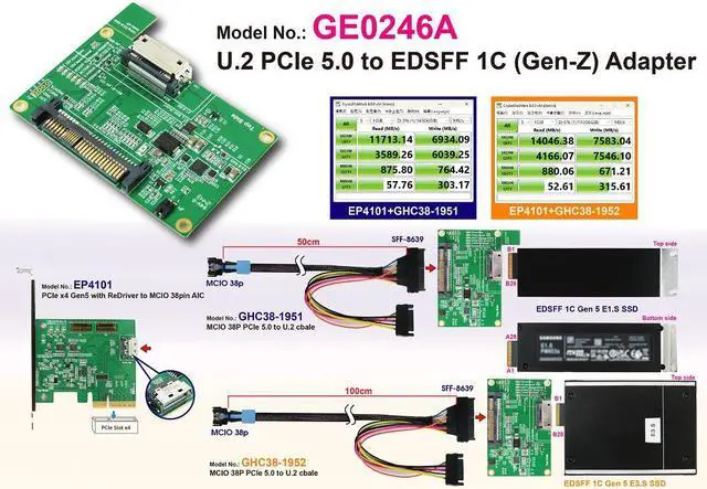 U. 2(SFF-8639) to EDSFF(Gen-Z) 1C convert for PCIe 5.0 signals
