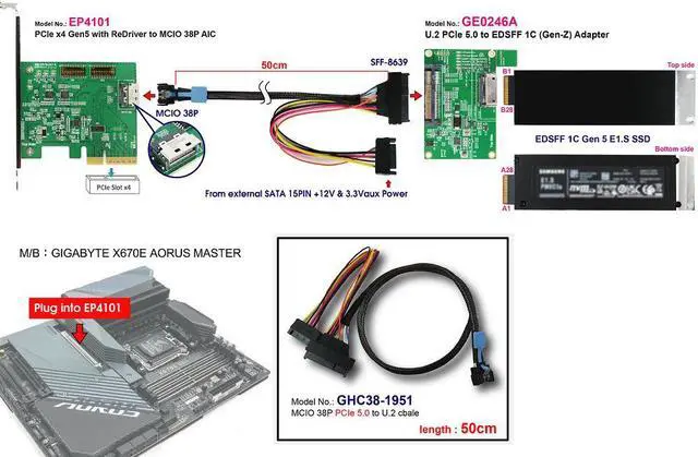 *U. 2(SFF-8639) to EDSFF(Gen-Z) 1C convert for PCIe 5.0 signals