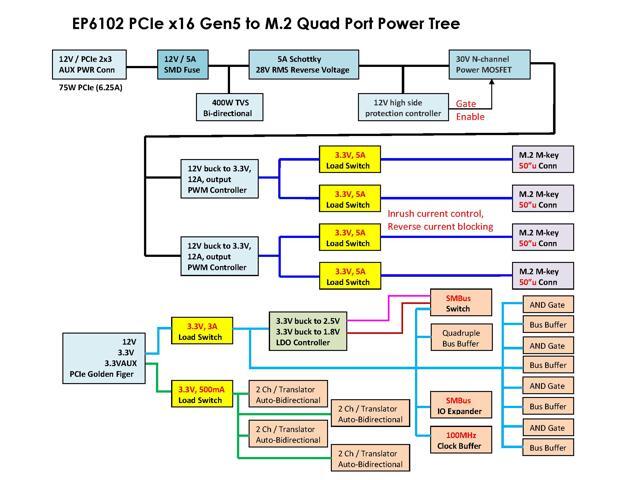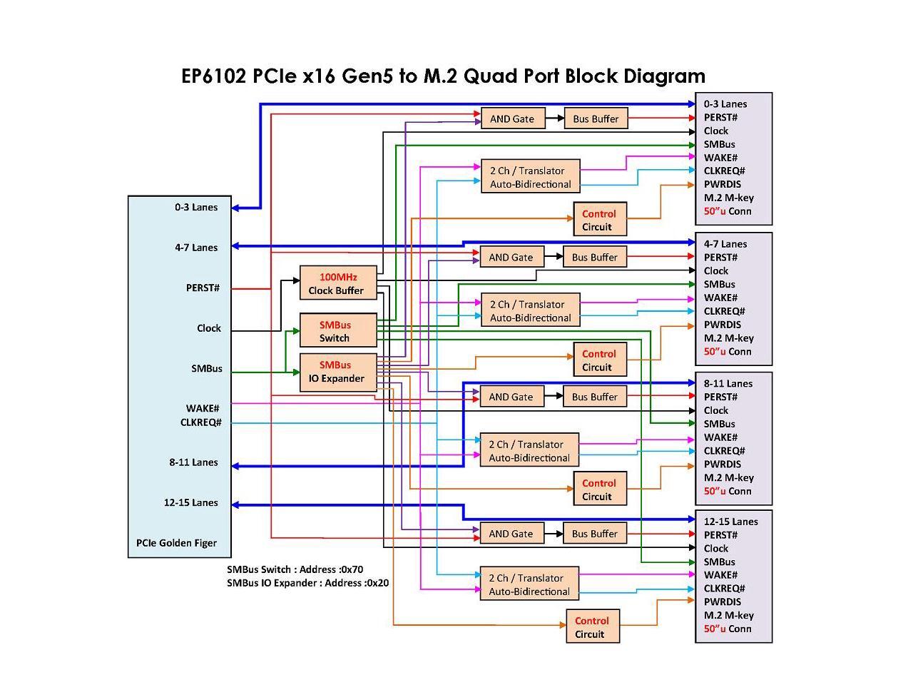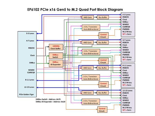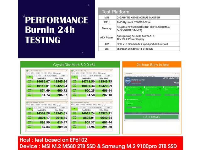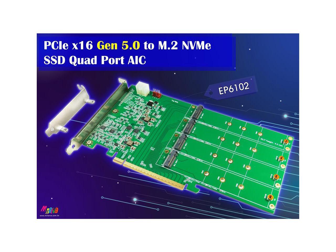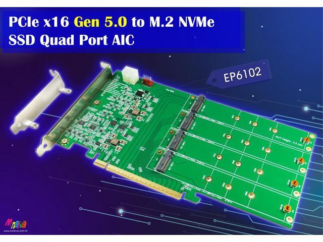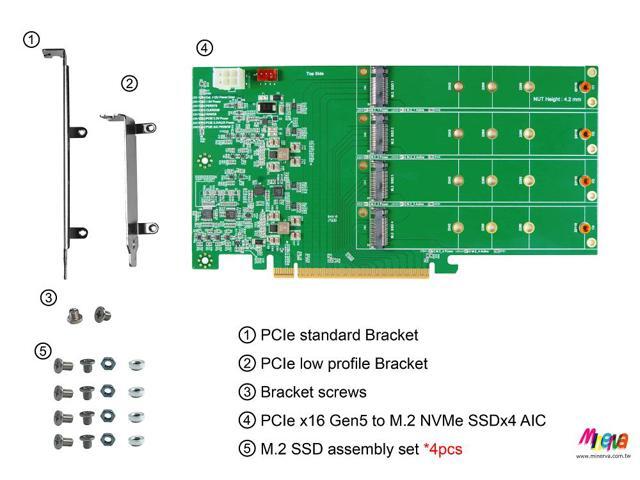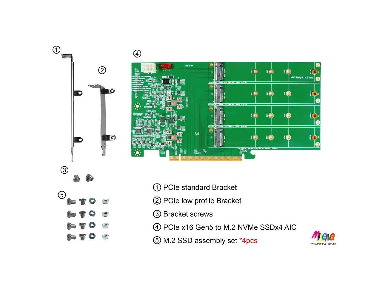 PCIe x16 Gen5 to M.2 Quad Port AIC, support 22x110mm