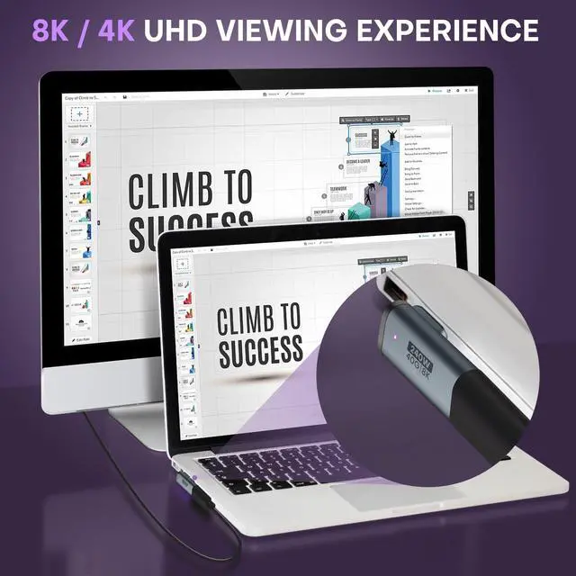 - Equipped with output: 48V/5A charger, 40Gbps data transfer, 8K 60Hz vidoe display.