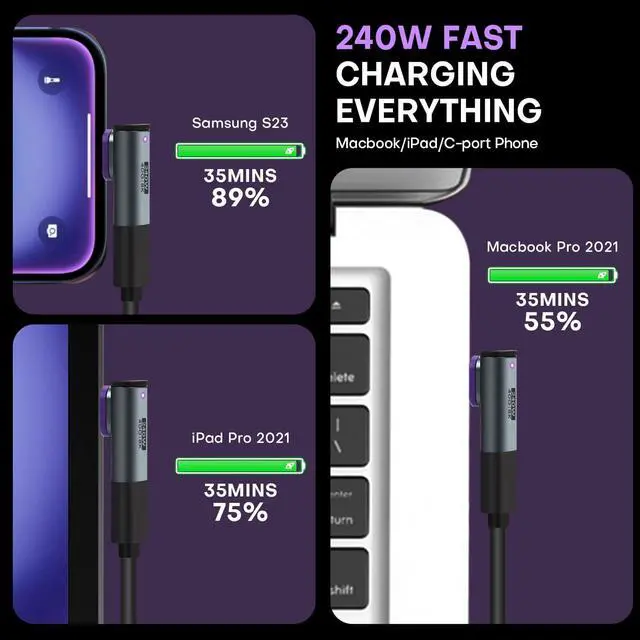 - 3 in 1 magnetic tips are widely compatible, We can use one cable to charge all devices;