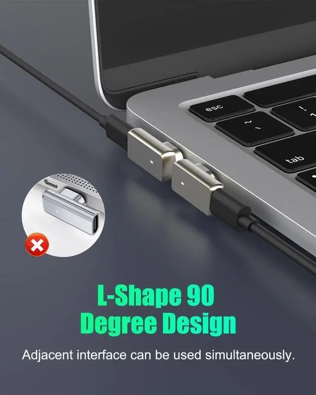 Its unique design allows two adapters to be plugged side-by-side into the MacBook Pro's USB-C ports.