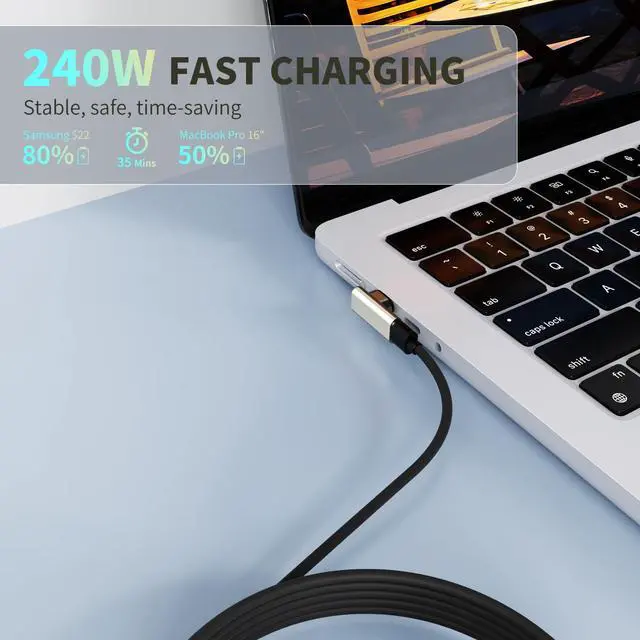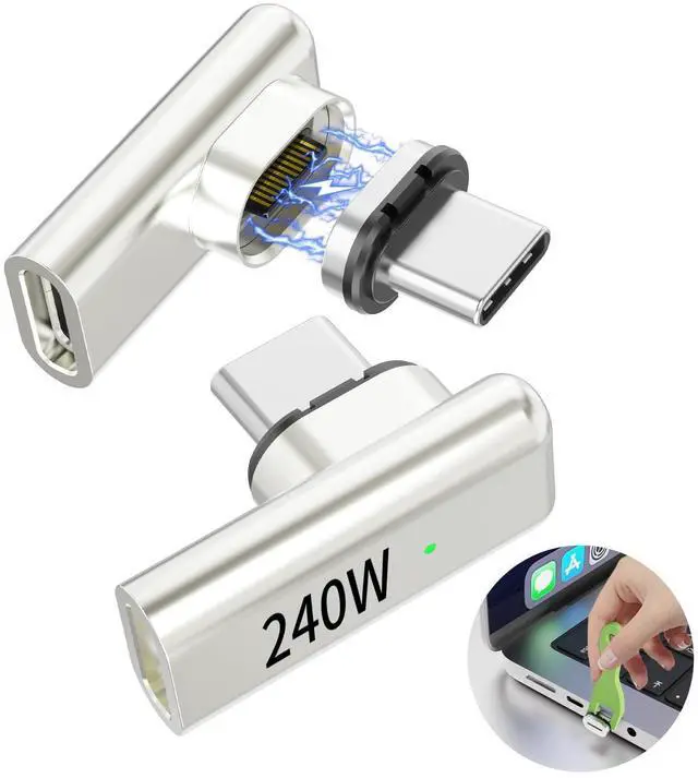 3C'S 240w 2 Pack 90 Degree Right Angle USB C Magnetic Adapter Fast charging and transmission