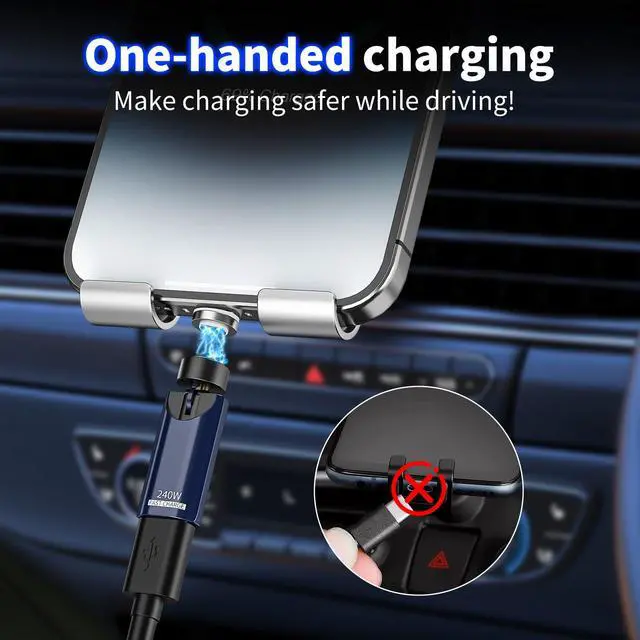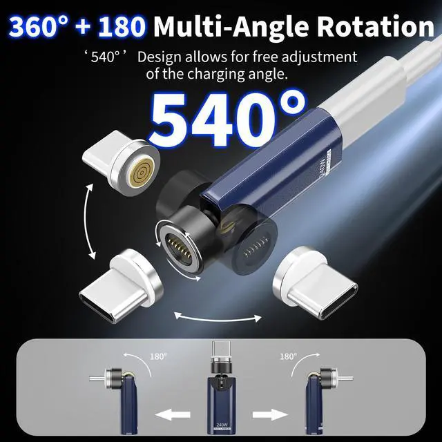 360° Rotating Magnetic Head for Greater Freedom: The 360° rotation + 180° adjustment design allows the charging cable to be adjusted to any angle, avoiding tangling or interfering with finger operations. Whether you're playing games in landscape mode, watching videos in portrait mode, or multitasking at work, you can maintain uninterrupted use and enhance your experience.