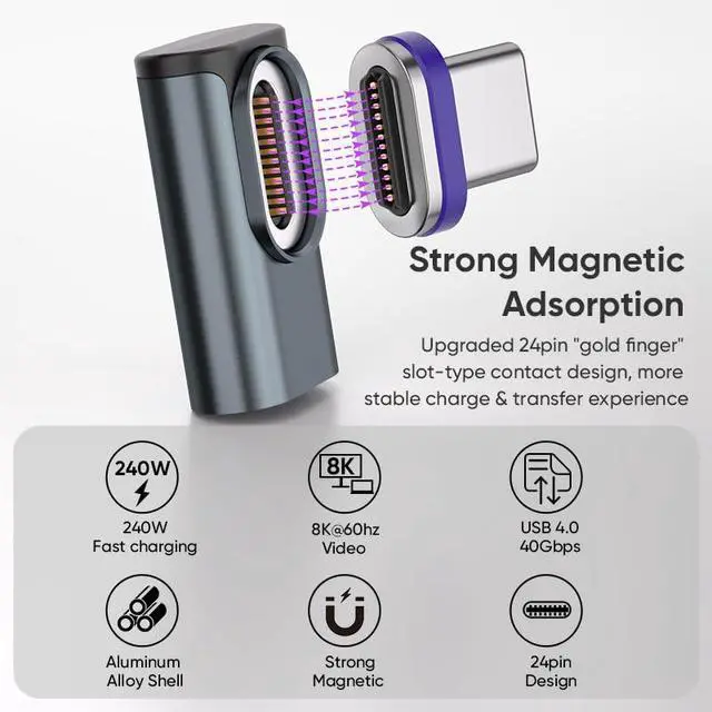 Delivers up to 240W power output, ideal for charging high-powered devices like MacBook Pro/Air and other USB-C laptops. It's a smart choice for a secure and stable magnetic connection