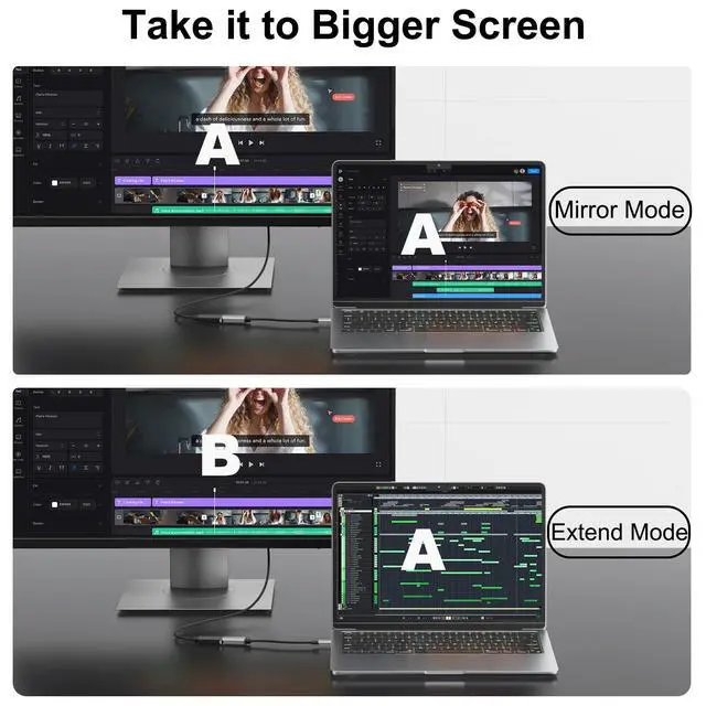 Ecosystem-Wide Compatibilityis deeply compatible with Windows 11/10/8/7, macOS and Android systems (Note: USB video output is required). Extended / mirrored dual-mode free switching, plug and play does not pick the device. Mirror mode to realize the screen 1:1 replica, expansion mode to easily set up a dual-screen office environment, MacBook multi-screen collaborative video editing, Windows split-screen processing reports, Android casting live, a device to handle the full range of scenarios