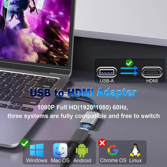 USB to HDMI Adapter 1080P 60Hz, USB A 3.0 to HDMI Adapter for Monitor, TV, Projectors, Compatible with Mac OS Windows 7/8/10/11 - Requires Driver Installation