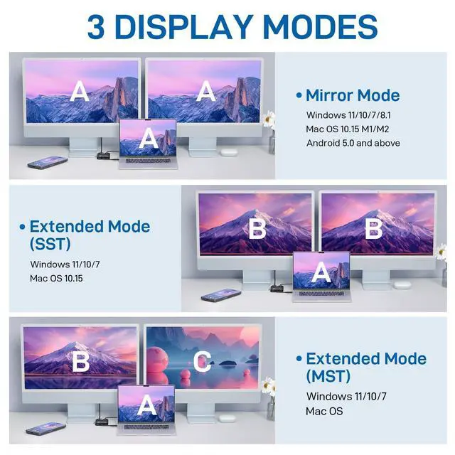 Broad System Compatibility: Works with Windows 11/10/8.1/7, Mac OS 10.15 (including M1/M2 chips), and Android 5.1+. Note: Windows 8/8.1 only supports duplicate display mode.