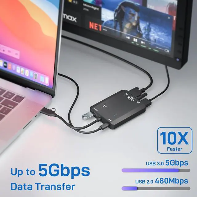 Full HD 1080p@60Hz Output: Delivers crisp dual monitor output at 1920×1080 resolution (60Hz) via HDMI. (Resolution limited to 720p when using USB 2.0 mode) Supports both extended and mirrored display configurations.