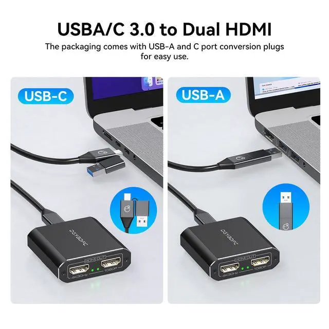 USB A/C to Dual HDMI Adapter