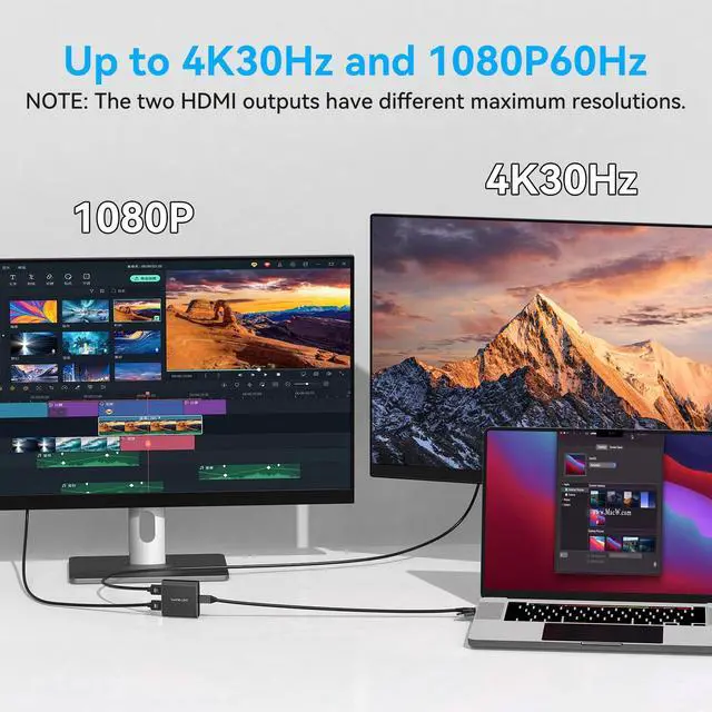 - Support resolution up to 3840*2160@30Hz+1080P60Hz(USB 3.0 port).