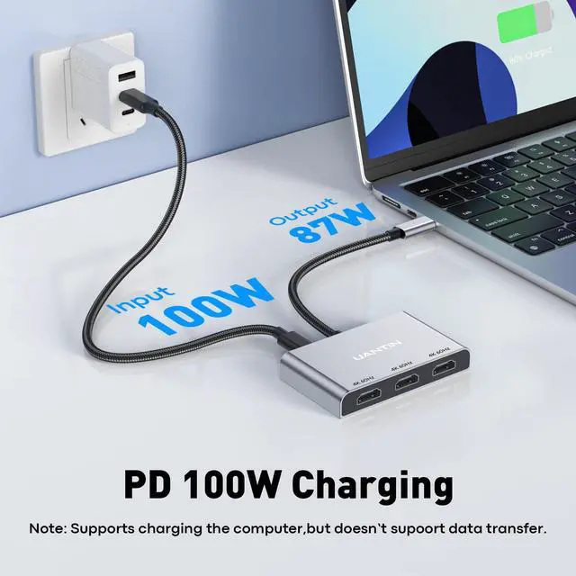 100W PD-Rejection AnxietyBuilt-in PD 3.0 power supply interface supports up to 100W fast charging, which can provide continuous power supply for laptops, cell phones and other devices, avoiding interface occupancy that causes device power anxiety. This expandable display adapter has more powerful performance to meet the needs of high power consumption devices