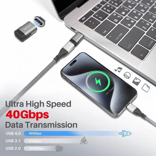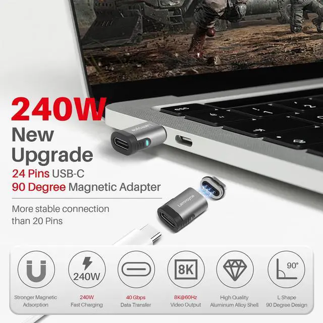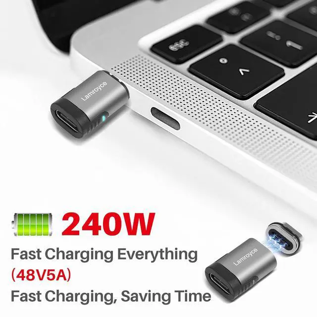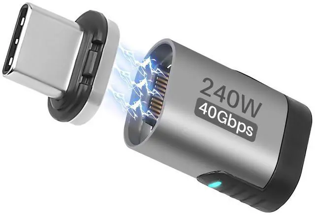 USB Type C Magnetic Adapter, 24 Pin Straight Magnetic USB4 USB Type-C Male to Female Connector Support 40Gbps Data Transfer,240W PD Fast Charging,8K@60Hz Video (Compatible with Thunderbolt 4/3)