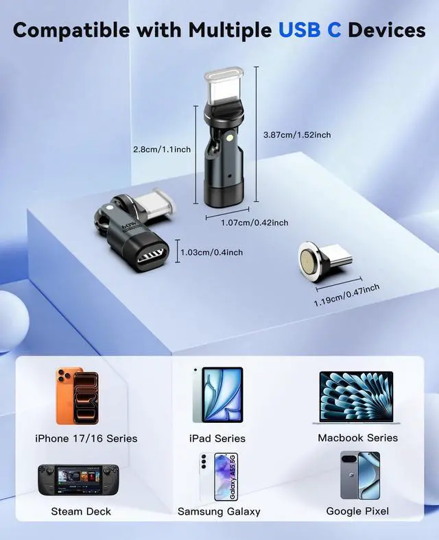 | Compatibility | iPhone 16/15/15 Plus/15 Pro/15 Pro Max, iPad Pro/Air 13inch 2024, iPad Pro/Air 11inch 2024, iPad Pro 12.9''/11'', iPad 10th Gen 2022, iPad Air 4/5, Macbook | iPhone 16/15/15 Plus/15 Pro/15 Pro Max, iPad Pro/Air 13inch 2024, iPad Pro/Air 11inch 2024, iPad Pro 12.9''/11'', iPad 10th Gen 2022, iPad Air 4/5, Macbook | iPhone 16/16 Plus/16 Pro/16 Pro Max, iPhone 15/15 Plus/15 Pro/15 Pro Max, iPad Pro 13-inch 2024, iPad Pro 11-inch 2024, iPad Air 13-inch 2024, iPad Air 11-inch 2024, iPad Pro 12.9''/11'', iPad 10th Gen 2022, iPad Air 4/5, Macbook, etc. | Apple Pencil 1, ipad 10/11th Generation, USB-C Charger, Power Bank, Laptop | iPhone 16/16 Plus/16 Pro/16 Pro Max/15/15 Plus/15 Pro/15 Pro Max, iPad Air/Pro, Galaxy S24/S23/S22/S21 series, Note 20/10, LG G7 V20, Google pixel, etc. | iPhone 16/16 Plus/16 Pro/16 Pro Max, iPhone 15/15 Plus/15 Pro/15 Pro Max, iPad Pro 13'' 2024, iPad Pro 11'' 2024, iPad Air 13'' 2024, iPad Air 11'' 2024, iPad Pro 12.9''/11'', iPad 10th Gen 2022, iPad Air 4/5, iPad Mini 6, etc. |