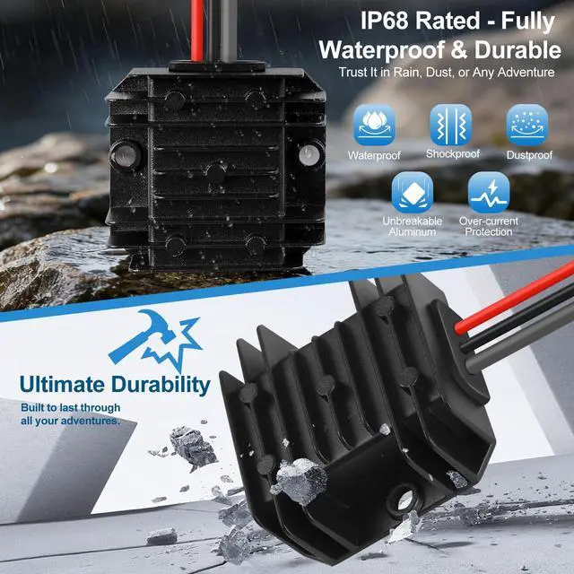 Built to Endure Harsh Environments Encased in a robust black-painted aluminum shell with silicone sealing, this starlink mini 12v power supply achieves an IP68 waterproof rating. It effectively resists dust, moisture, shock, and corrosion, ensuring stable performance and superior heat dissipation whether you're facing heavy rain, dust storms, or intense sun.