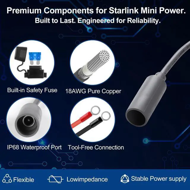 Multi-Protection for Ultimate Peace of Mind Safety is our top priority. This 12v starlink mini power supply features a built-in fuse and intelligent safeguards against over-current, over-voltage, short-circuit, and over-heating. This comprehensive protection system ensures complete safety for your valuable Starlink Mini system and your vehicle's electrical circuit.