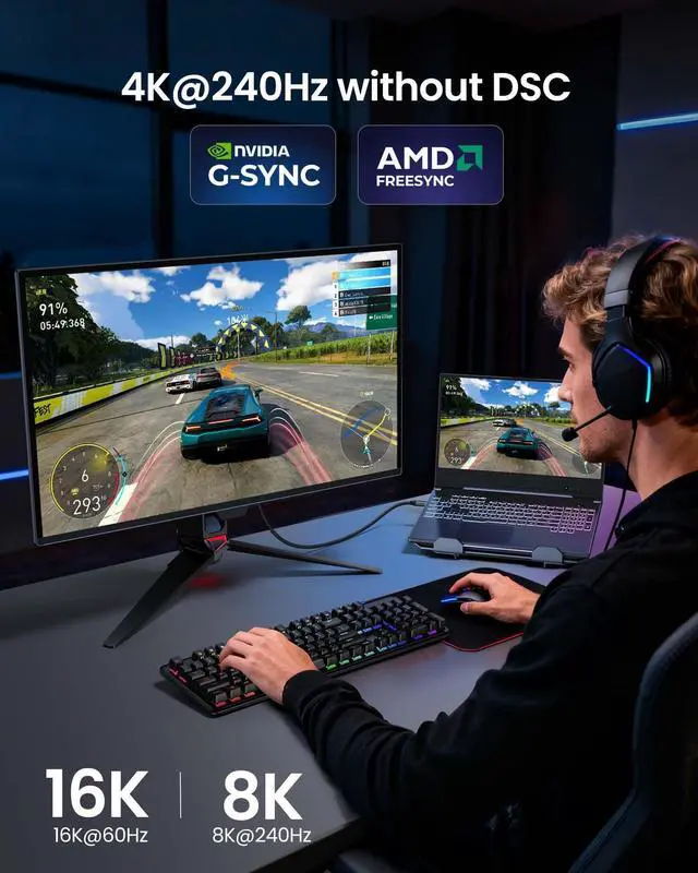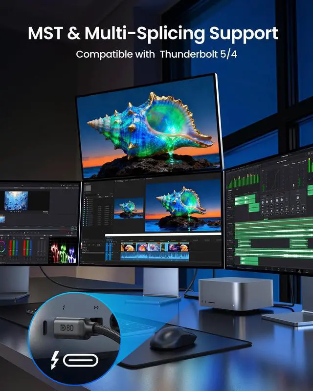 ![Alt view image 7 of 7 - 80Gbps USB C to DisplayPort 2.1 Cable [16K@60Hz, 8K@240Hz, 4K@540Hz], Unidirectional Thunderbolt 5/4 to DisplayPort, USBC to DP for MacBook, Mac mini, Odyssey G8/G9, iPhone 17, 6.6FT](https://c1.neweggimages.com/productimage/nb640/C6EHD2604270LJWXI6A.jpg)