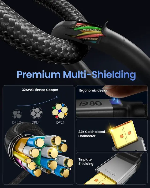 ![Alt view image 6 of 7 - 80Gbps USB C to DisplayPort 2.1 Cable [16K@60Hz, 8K@240Hz, 4K@540Hz], Unidirectional Thunderbolt 5/4 to DisplayPort, USBC to DP for MacBook, Mac mini, Odyssey G8/G9, iPhone 17, 6.6FT](https://c1.neweggimages.com/productimage/nb640/C6EHD2604270LJQ8V57.jpg)