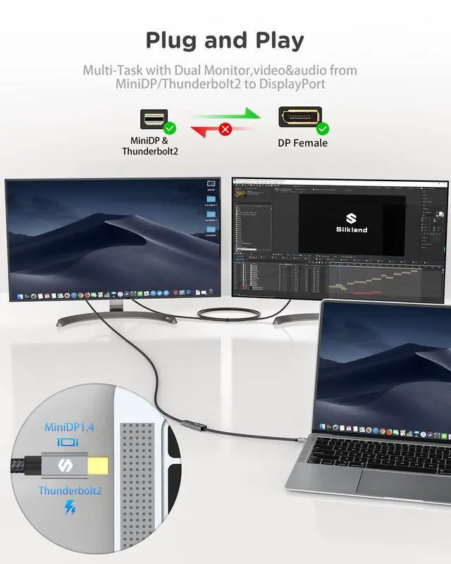 - Do not support Thunderbolt3/4 output: the Mini Displayport to Displayport adapter supports Mini Displayport and Thunderbolt 2 connectors. However, Thunderbolt 3/4 is not available. Please check the connectors carefully before purchase.