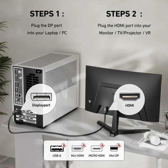 - Displayport is different with USB Port. This Cable is Not compatible with USB Port.