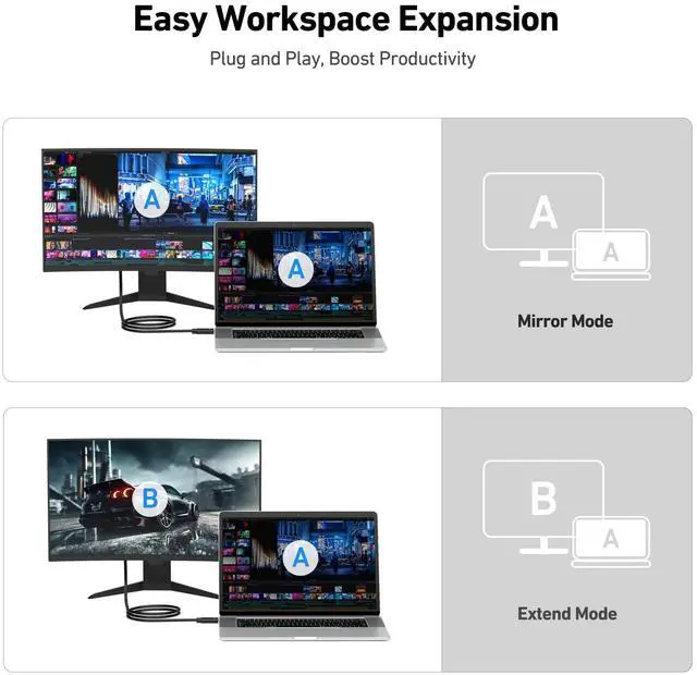 | Video Mirror Direction | USB-A/C Source to HDMI Display | no data | DP Source to HDMI Display | HDMI Source to DP Display | HDMI Source to DP Display | DisplayPort Source to DisplayPort Monitor |