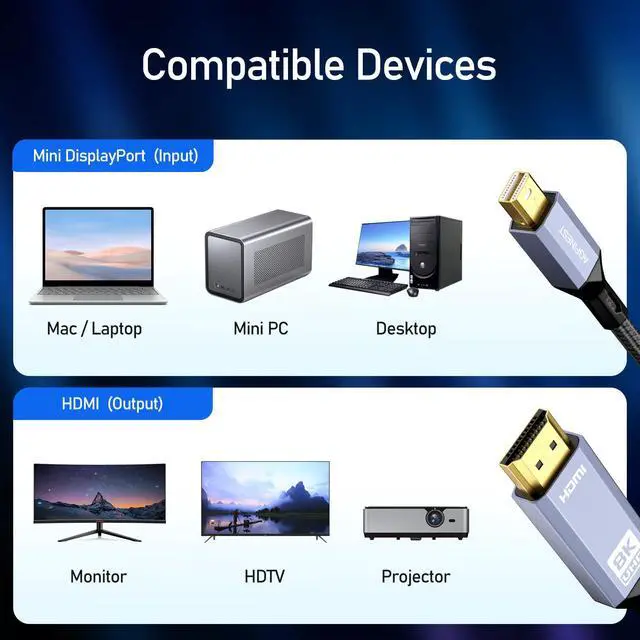 | Name: | Mini DisplayPort 1.4 to HDMI 2.1 Cable |