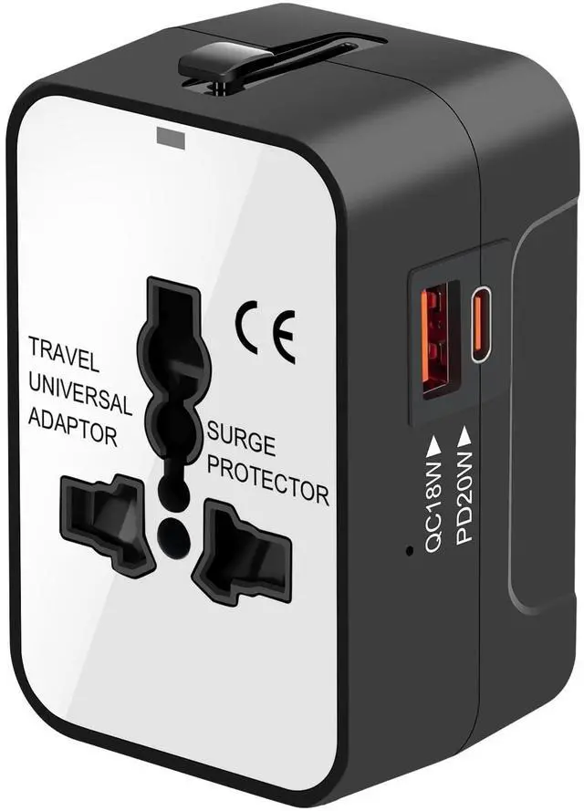 Travel Adapter with PD20W USB-C, Worldwide All in One Universal Travel Adaptor with Dual 3A USB Charging Ports, International Power Plug Adapter Wall AC Charger for Cell Phone Laptop
