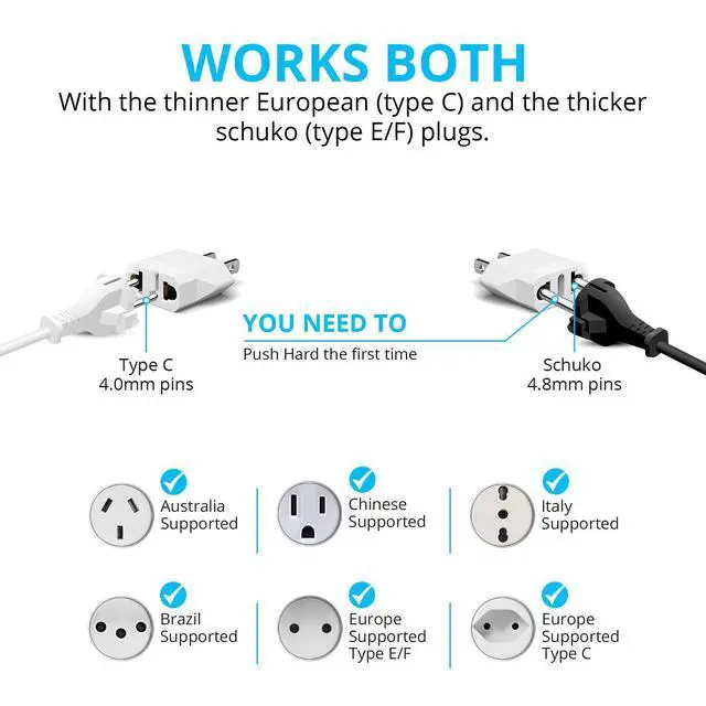 * Works everywhere with all the major plug types including USA type A/B, European C & E/F, Australia I, UK G, and Italy L. Accepts plugs from almost every continent. These are the latest premium adapter essentials for anyone who wants the easy and perfect solution to charge their devices in North America.