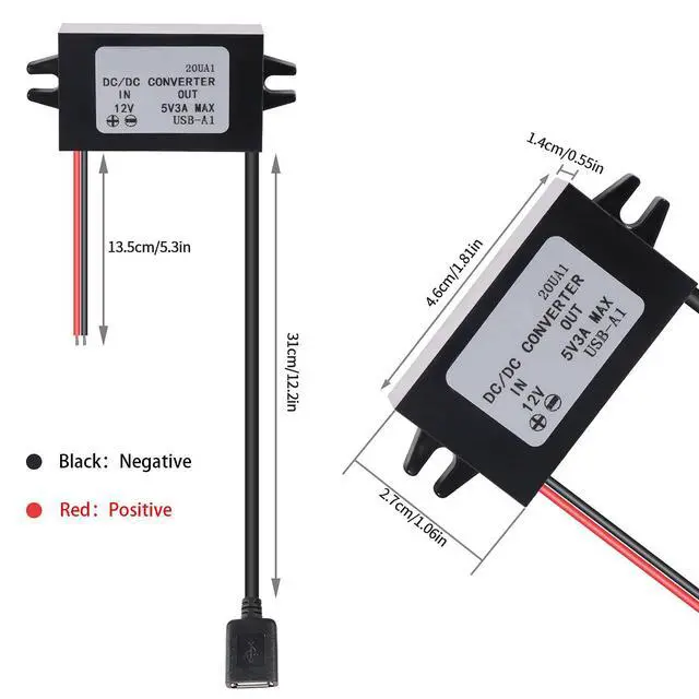 12V convert to 5V USB output power adapter is using intelligent microprocessing chip, DC to DC converter module has USB charging ports, DC to DC buck converter has integrated switch thin regulator module, the conversion rate is as high as 96%.