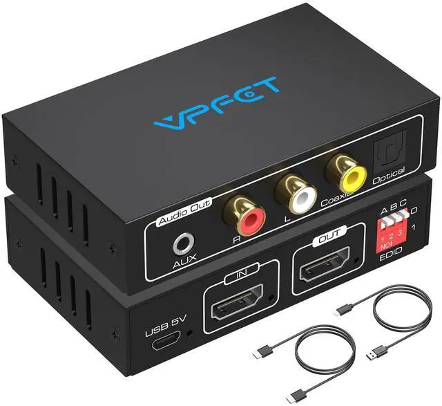HDMI Audio Extractor 4K Splitter to Optical 3.5mm AUX L or R Coaxial Converter 8 EDID Settings Supports HDCP 1080p 3D Digital DTS 5.1 PCM for Pass Through CEC