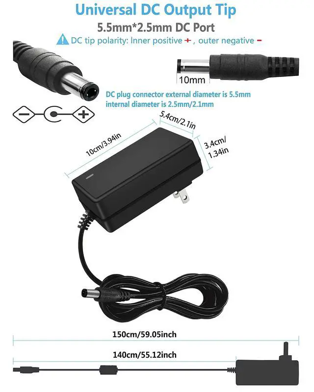 Product Specification Input: 100V-240V 50/60Hz; Cord Length: about 150cm (4.6FT); Output: DC 24V 2A (2000mA) max. Works with devices that draw less than 2A.