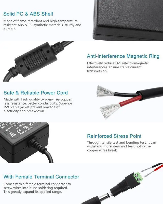 Wide Used It is perfect for 24V devices less than 48W, such as 5050 3528 24V LED Strip Light, Router, ADSL Cats, HUB, Security Cameras, Audio/Video Power Supply, 3D Printer, LED Driver, CCTV Security System, LCD Monitor, Webcam Router, and other 24V devices.