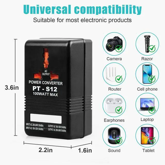The voltage converter is capable of either stepping up the voltage from 110-120V to 220-240V or stepping it down from 220-240V to 110-120V. It operates quietly, boasts an elegant design, and is highly portable, making it ideal for powering global electronic devices and small appliances during travel.