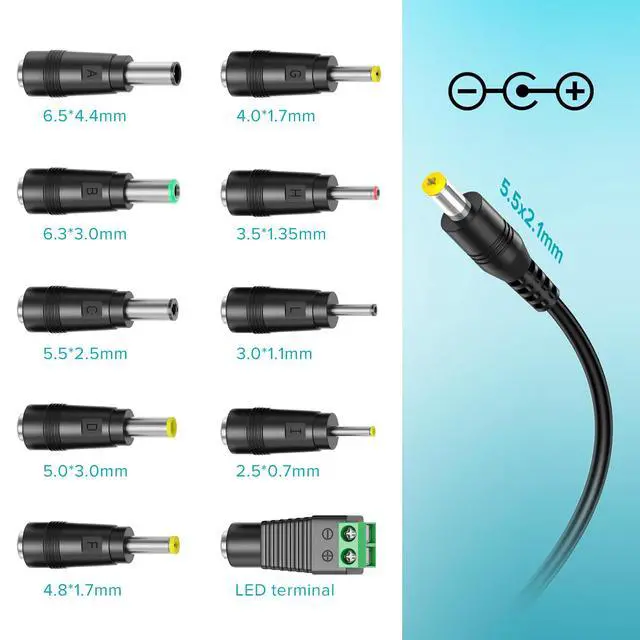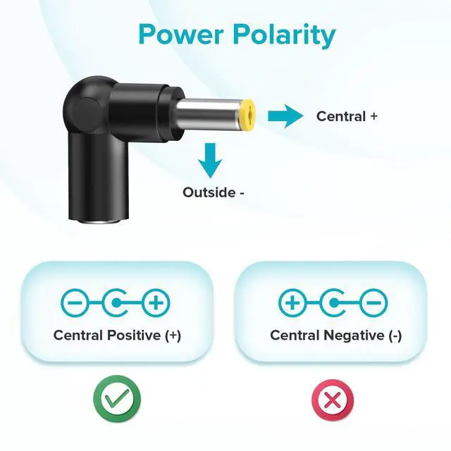 [DC Plug Power Polarity] Central Positive(+), Outer Negative(-). Polarity cannot be reversed. Some devices require Central Negative (-) and outer positive (+), which is totally opposite, please check carefully before buying.