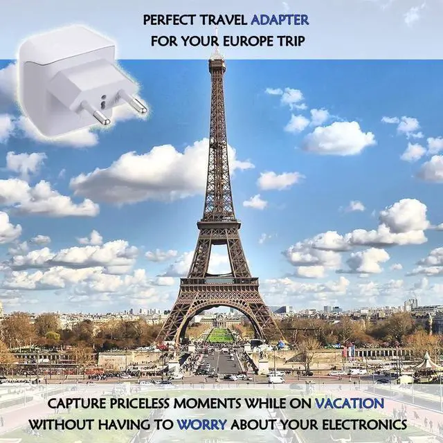 Turkey, Egypt, Iceland Travel Adapter Plug - Type C - Europe - 2 In 1 - Light Weight - Perfect for Cell Phones, Chargers, Cameras and More