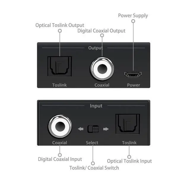 Digital 2-Way Audio Converter, Coaxial to Toslink/Coaxial or Toslink to Coaxial/Toslink.
