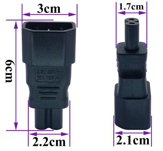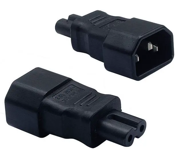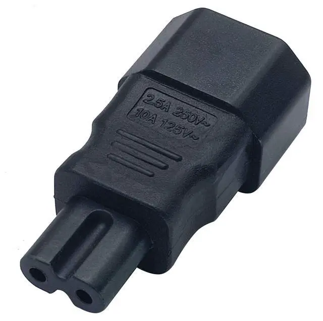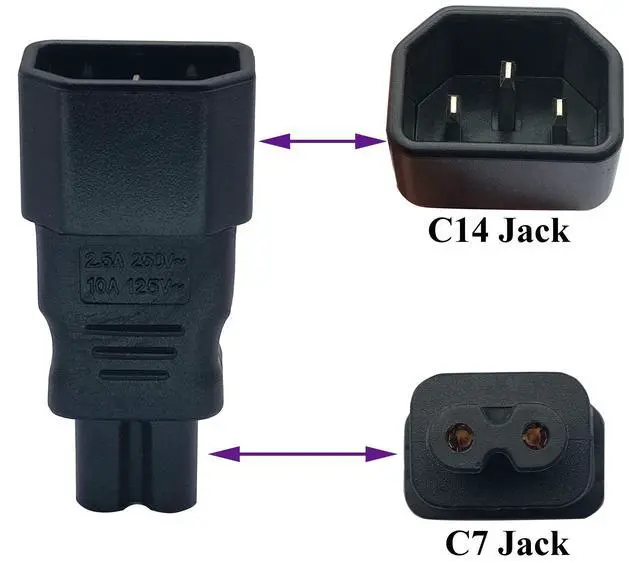 C7 to C14 Plug Adapter; Convert your C13 power cord to 2-Pole IEC 320 C7 female port without extra cable, convenient adapter often used to convert LED LCD Smart TV, Monitor, Printer, Scanner, Projector, Game Console, Entertainment System, Audio Multiroom Speaker, Laptop Notebook Charger, Camera Battery Charger, Sewing Machine and other devices requiring 2 prong AC cord, etc.
