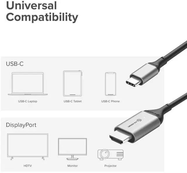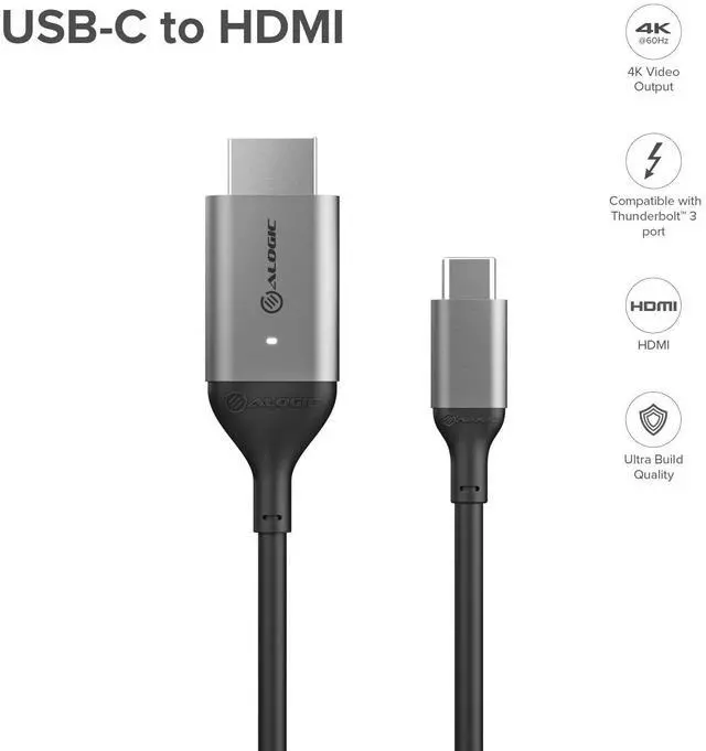 Alogic 3.28ft 4K 60Hz USB-C Male to HDMI Male Cable Space Grey ULCHD01SGR