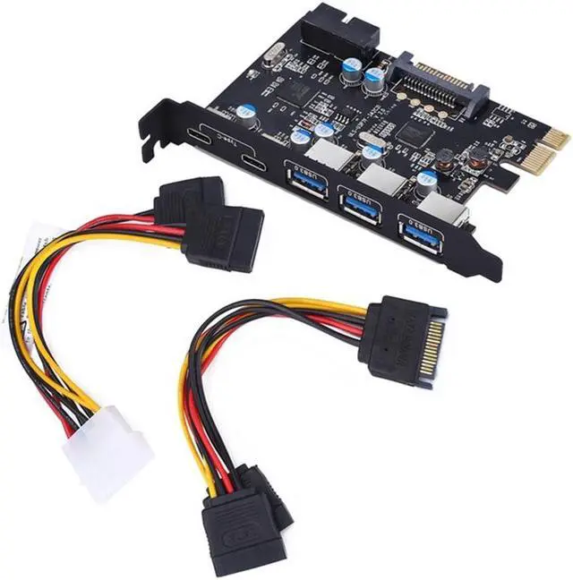 Description 7-Port PCI Express Card, Expand Three USB 3.0 A Ports and Two USB 3.0 C and Internal USB 3.0 20-PIN with 15-Pin Power Connector One Step Update your Computer to 5 ports USB 3.0 (2*Type C+3*Type A) Easily with PCI Express to USB 3.0 Controller Adapter Card; 1 USB 3.0 19-pin Connector ( expand another two USB 3.0 ports ) SuperSpeed USB 3.0 supports transfer rates of up to 5Gbps - The actual transmission speed is limited by the setting of the device connected. Backwards compatible with USB 2.0 and 1.1 devices;