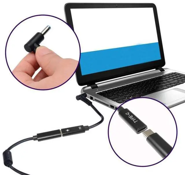 DP 5.5 x 1.7mm to Type-C Female Power Adapter Charger Cable (Black)