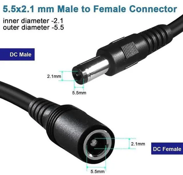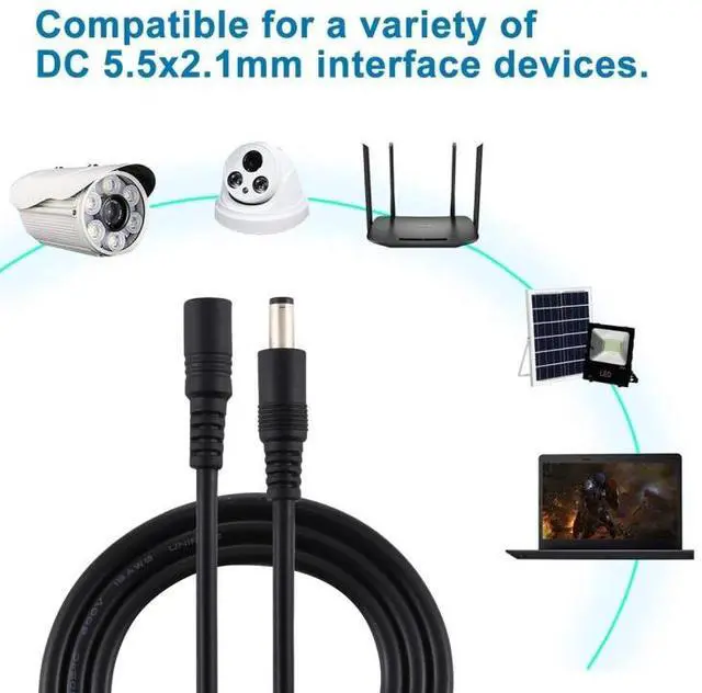 1. Easy to install, save time 2. Securer cable connection 3. DC power jack female + male connector 4. Simply appearance for power cabling 5. 5.5mm x 2.1mm power plug connector 6. Material: TPE+PVC+metal 7. Cable length: 1m, 1.5m, 3m, 5m, 10m