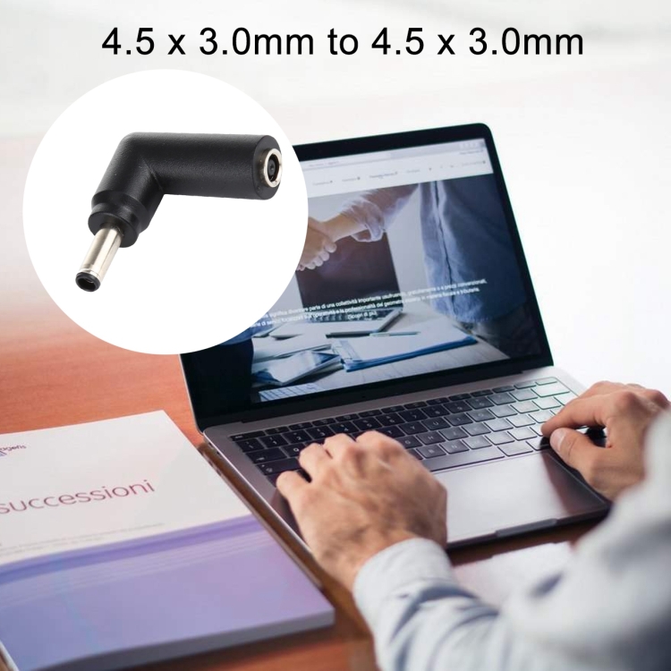 1. 4.5 x 3.0mm female to 4.5 x 3.0mm male plug notebook adapter connector 2. Type: DC converter plug 3. Small size and easy to carry 4. Product material: PC + metal 5. Product size: about 30x34mm