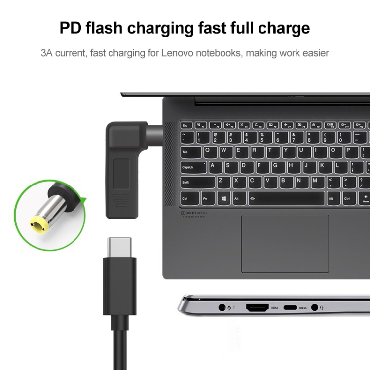 1. Type-C female to 5.5 x 2.5mm male plug notebook adapter connector. 2. Small size and easy to carry. 3. Product material: PC + metal. 4. Product size: about 38x33x11mm. 5. Weight: about 9.5g.